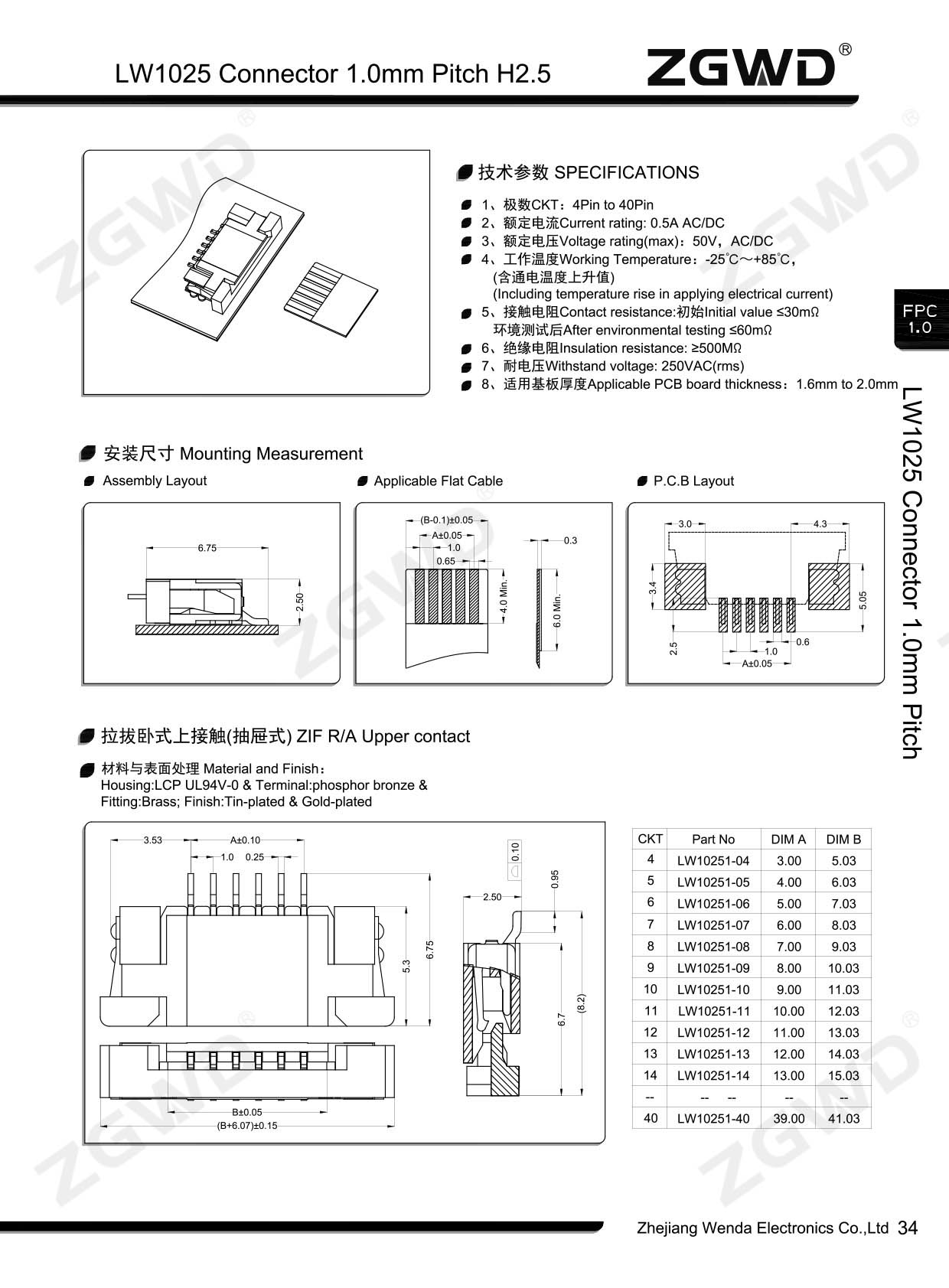 当前分类: FFC&FPC连接器 > 1.0间距